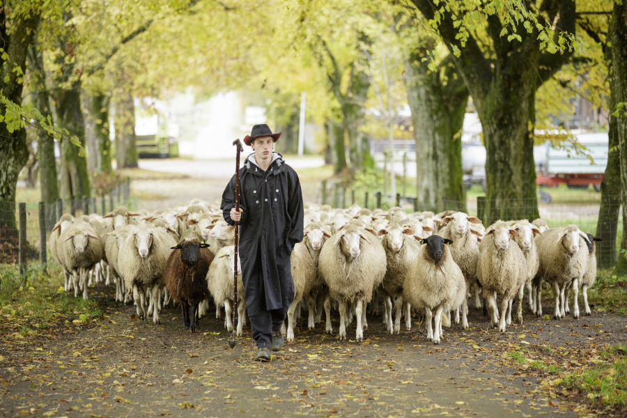 Schäfer führt Schafherde